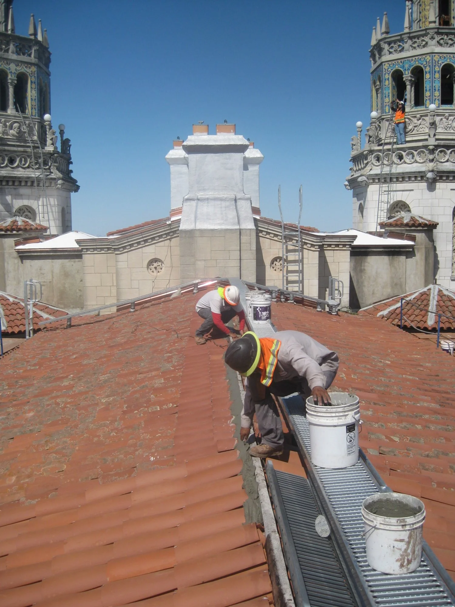 Project Scope: Salvaging historic clay tiles, installing new waterproofing systems amidst the historic fabric, adding code compliant anchorage, and mitigating ecological concerns over 14,000 square feet on 35 distinct roof areas.